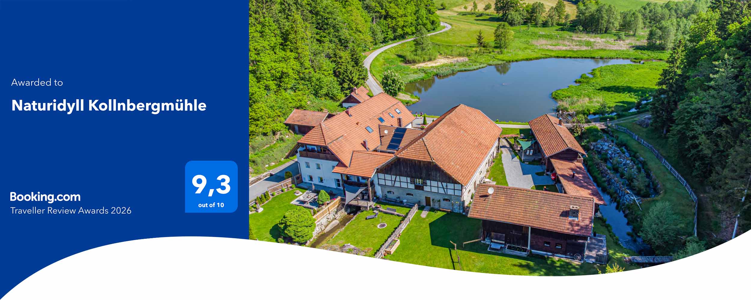 Wir sind stolz darauf, dass unser Naturidyll Kollnbergmühle in den Jahren 2023, 2024, 2025 und 2026 vier Mal in Folge den Traveller Review Award von Booking.com erhalten hat